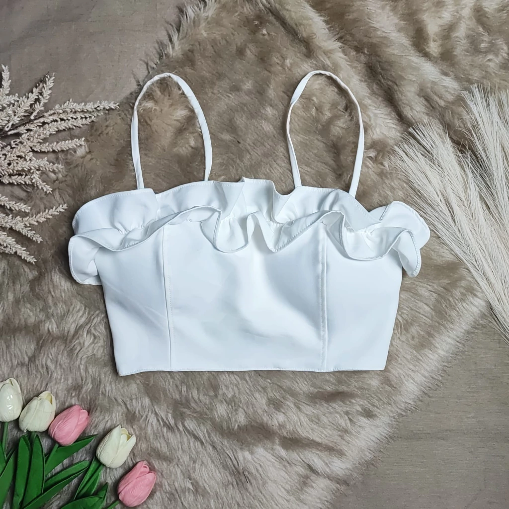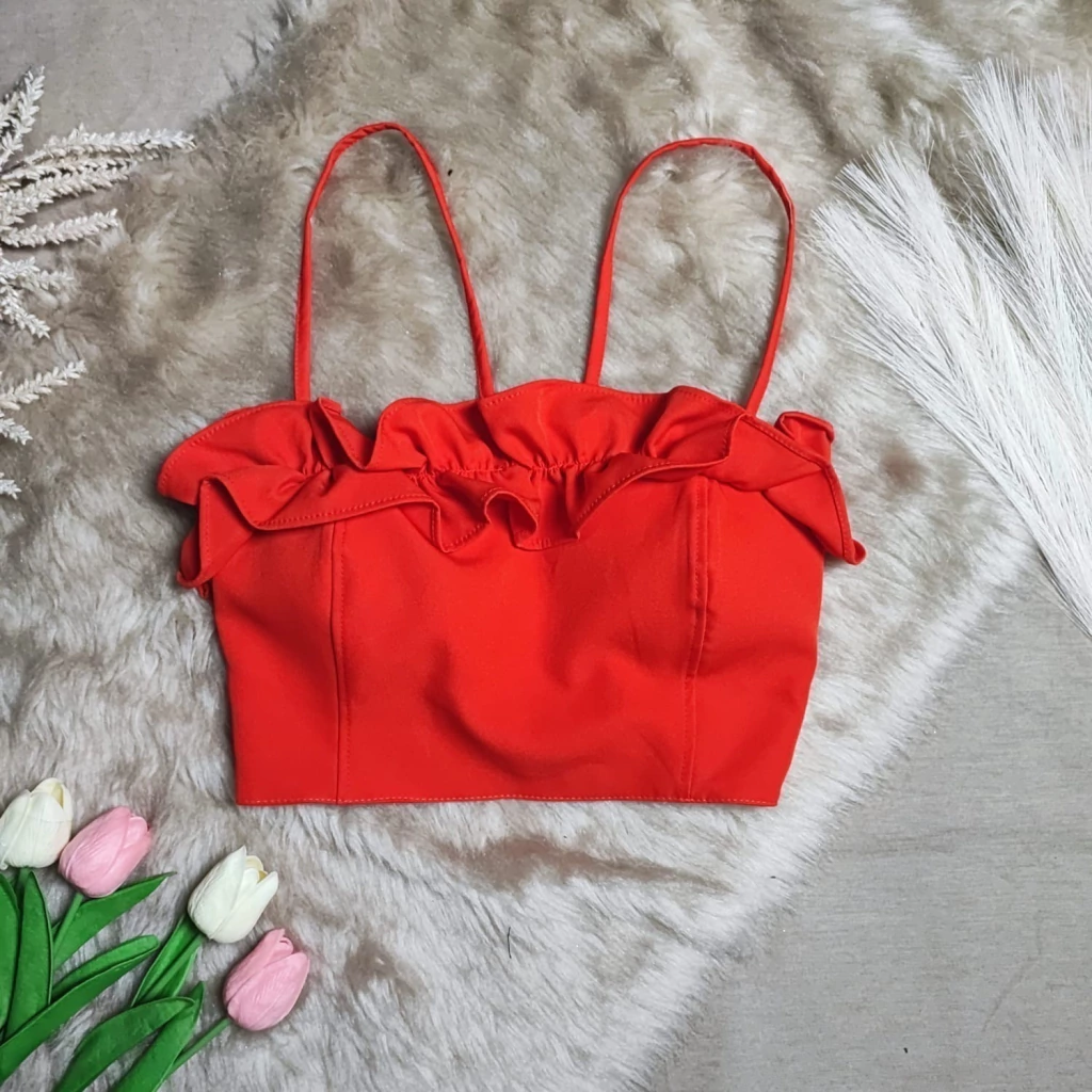 O Top Cami Babado Alça é a peça perfeita para um look delicado e sofisticado. Com design estruturado em tecido de alfaiataria, ele possui babados elegantes que adicionam um toque romântico à produção. As alças finas trazem leveza ao modelo, enquanto o fechamento posterior com amarração garante um ajuste perfeito ao corpo. Ideal para quem busca um visual moderno, feminino e versátil.